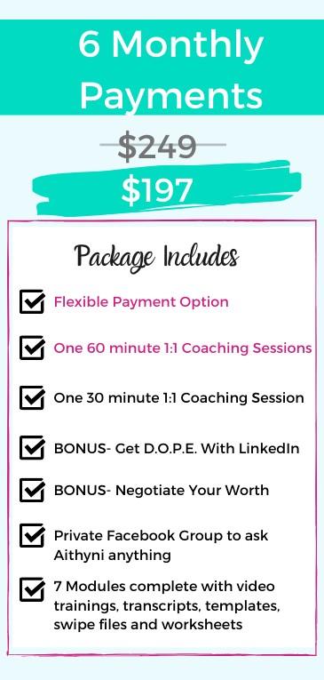 We all need a champion and advocate when in the job market and Aithyni was definitely a no-nonsense advocate, that pushed me to realize my full potential. while I was a top performer, early on, I struggled. I highly recommend her for your professional and career development needs. You won’t regret it